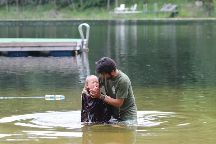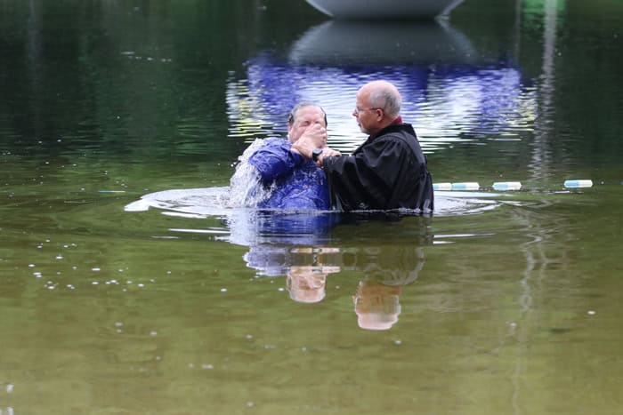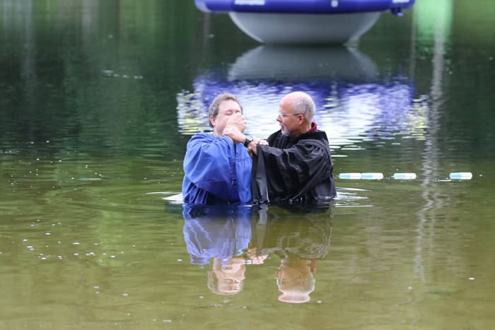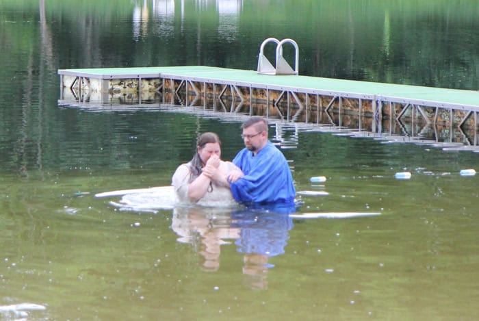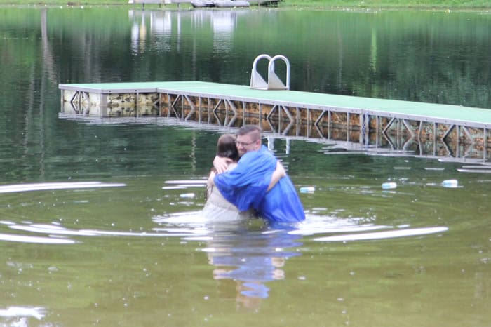 The rain stayed away until just a few minutes after the baptism service ended! People were making their way back to their campsites praising God for His goodness.