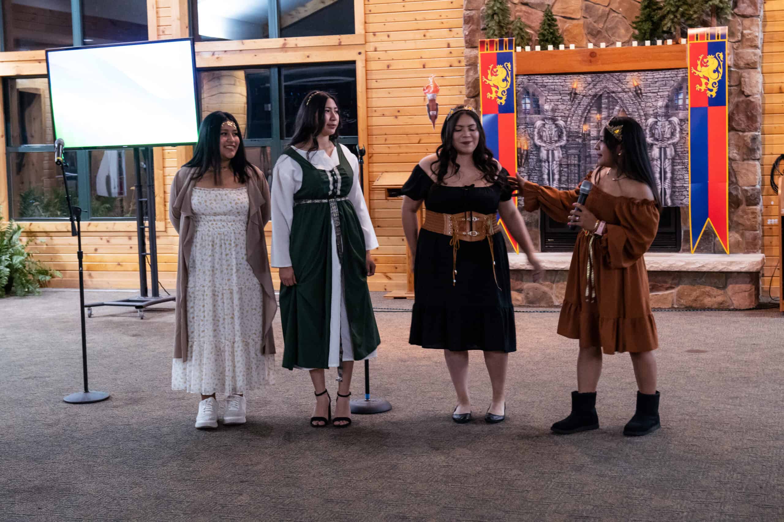 El tema del retiro de este año fue ‘Guardadores del Reino’ por lo cual también la vestimenta para el banquete, que se llevó a cabo el sábado por la noche, fue de acuerdo a la era medieval y un buen número de jóvenes se vistieron así, participando en el concurso para el mejor disfraz de la época medieval.