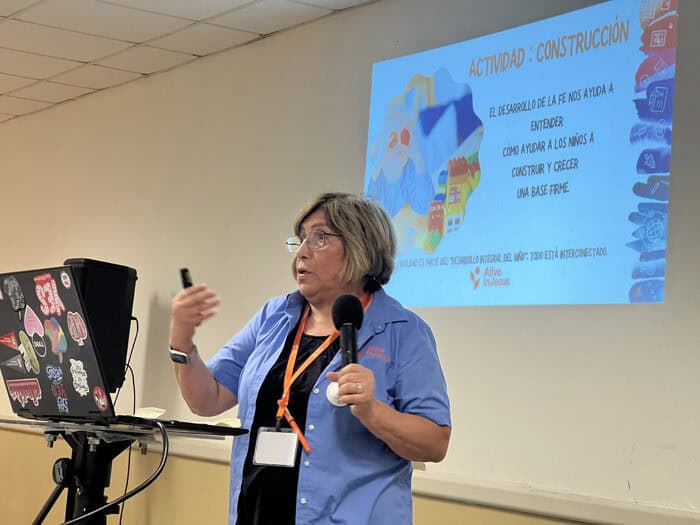 La directora del Ministerio Infantil de La División Norteamericana, la Dra. Shery Urihg y el pastor Gerry López vinieron con su equipo de Maestros para enseñar este nuevo currículo y compartir ideas de cómo dar la clase de escuela sabática a los niños de estas edades y como ayudarles en su desarrollo físico, mental y espiritual. También se presentaron técnicas y estrategias para ministrar a los niños con necesidades especiales.