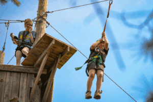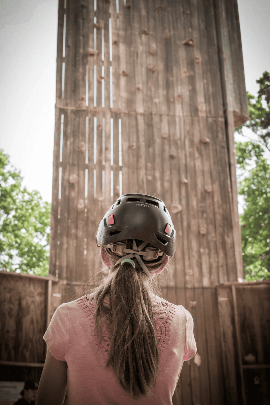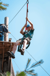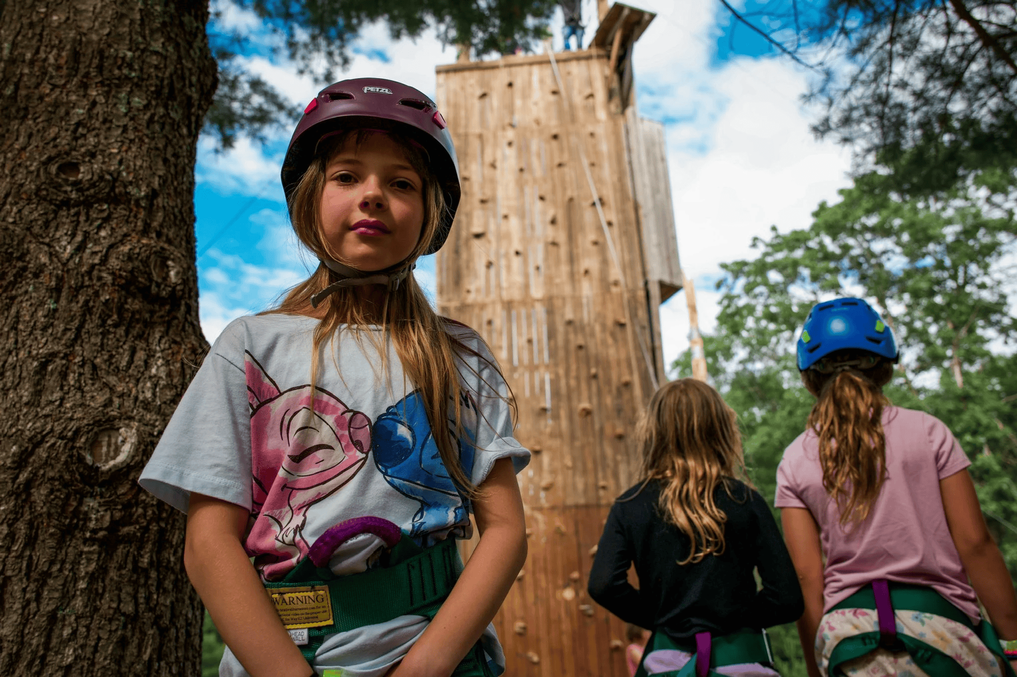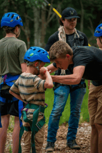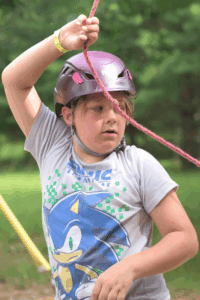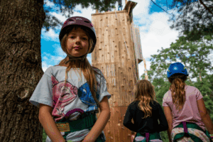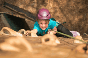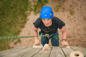Timber Ridge Camp, in Indiana, as well as many other camps, has built a climbing wall on the inside wall of an existing pavilion. This means the construction is cheaper, because it doesn’t need to be self-supporting, and the activity is indoors, so it could be used year-round. We’ve also seen several camps bring in an arborist to check tree health and put holds and climbing features onto existing healthy trees, which would have very low building cost, but would still allow for a fun activity. If trees were used, there could also be the possibility of a low- or high-ropes component, again with less cost than building a new structure.
