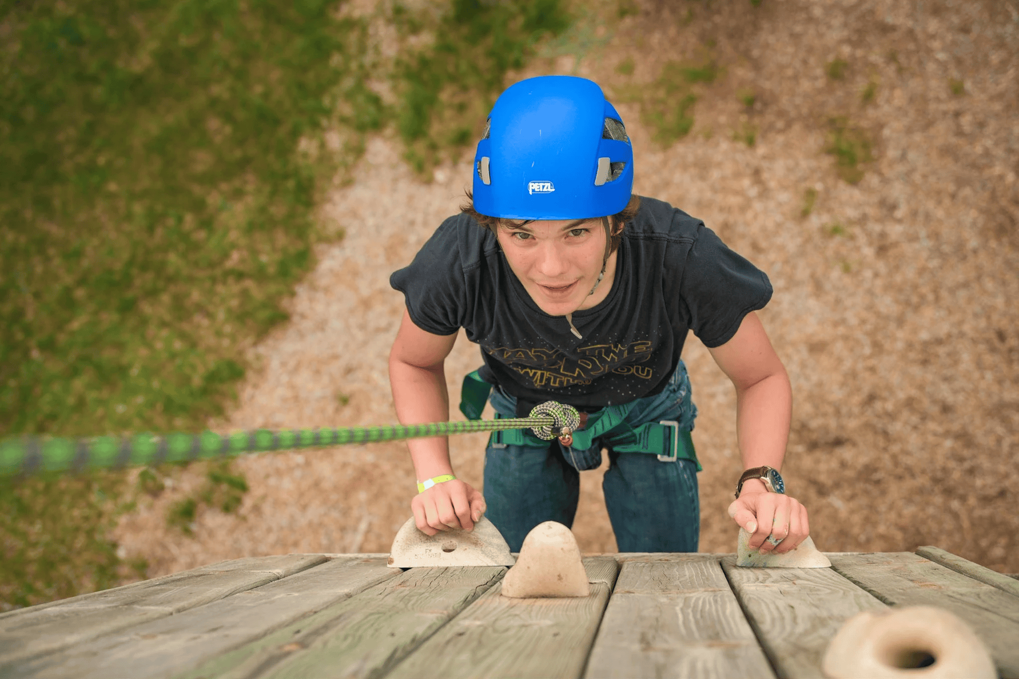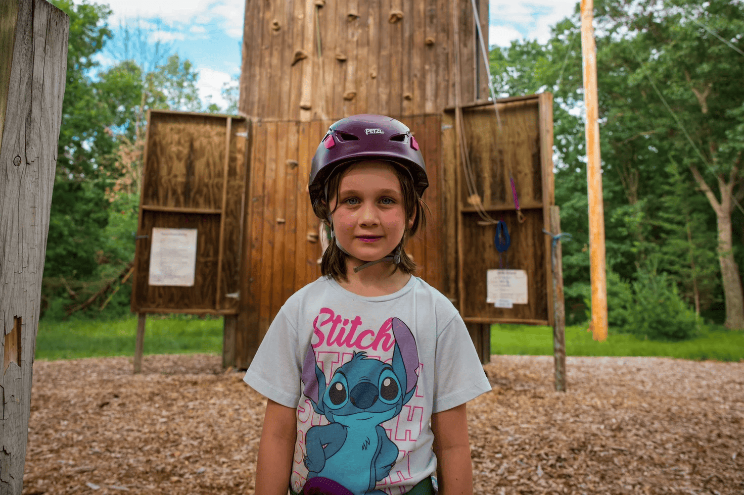 Which brings me to the point of this article: we are saying goodbye to Howie. When I became the Camp Director back in 2021, inspectors were already telling me the wall was past its prime and that they were concerned about its age and the safety complications of a wall that old. In the years since, we’ve done everything experts suggested to keep it a safe and continuing activity–from patching and covering woodpecker damage, to putting chemical wraps on the base of the poles, to spraying the wall down with sealant, to replacing boards and holds, to tightening wires, and so on. However, after several years of doing everything we can to preserve the life of our climbing wall–it is finally time to retire the activity. Not for good, as we have some hopes for the future of climbing activities at Camp Wakonda, but Howie has hit the point of diminishing returns where we’re finding it is more expensive than it’s worth each year, with the possibility that it likely won’t pass safety certification in the spring.