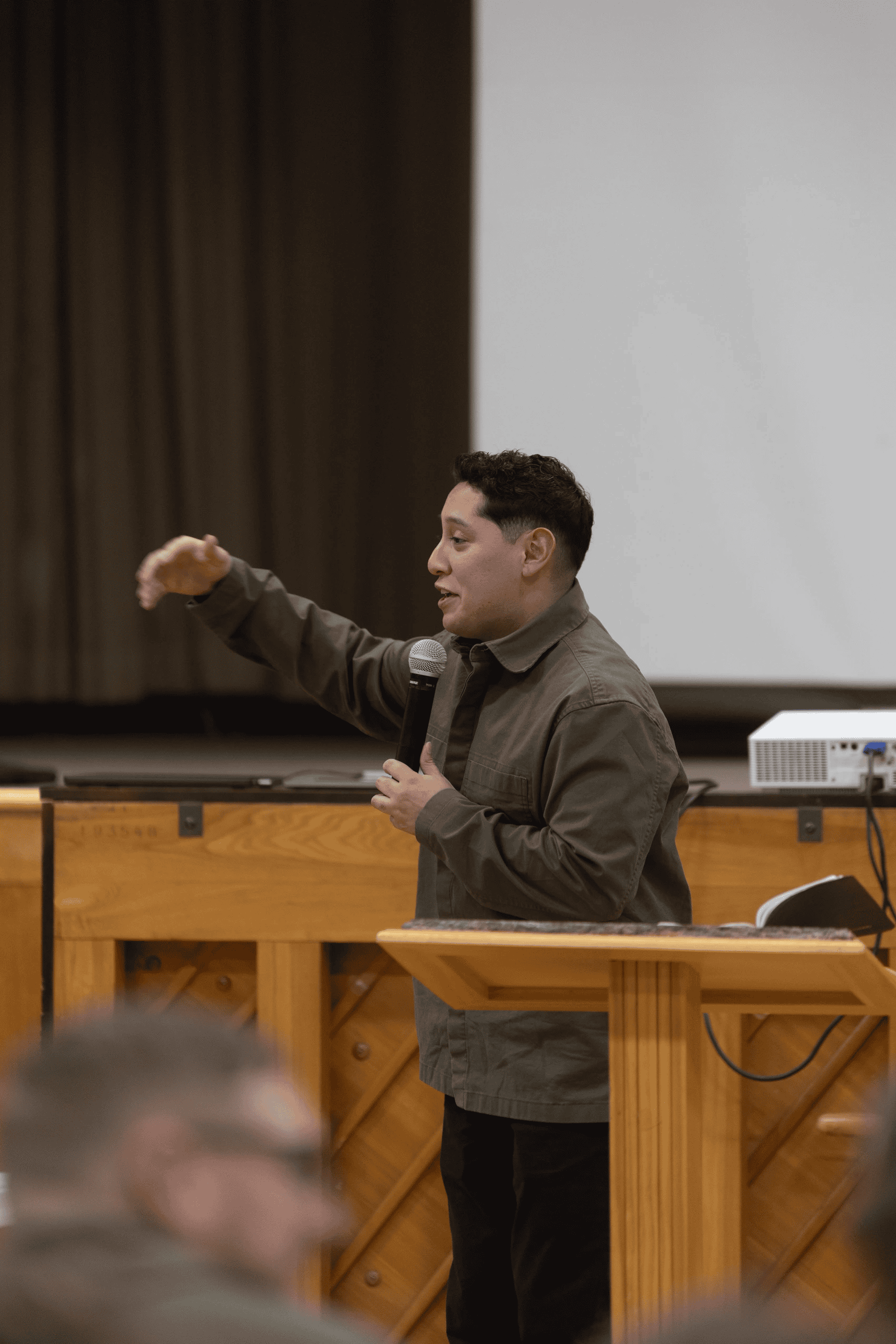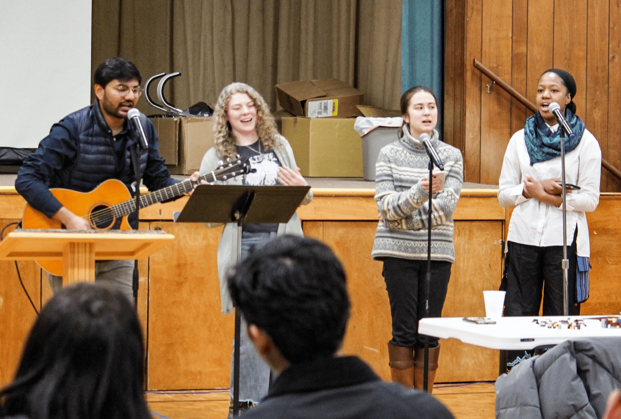 Music, throughout the day, was led by Pastor Aseel Nazir and a team of young adults from the Milwaukee Central Church. At times, Pastor Zack Payne and Ricardo Colindres joined in, when some of the song leaders had to head out. Participation was enthusiastic, and groups of young people ran up to the stage to help sing and perform motions for the songs they knew best. Pieces of Purpose, written by Preston Carter (when he was a student at Wisconsin Academy last year), continued to be the theme song.