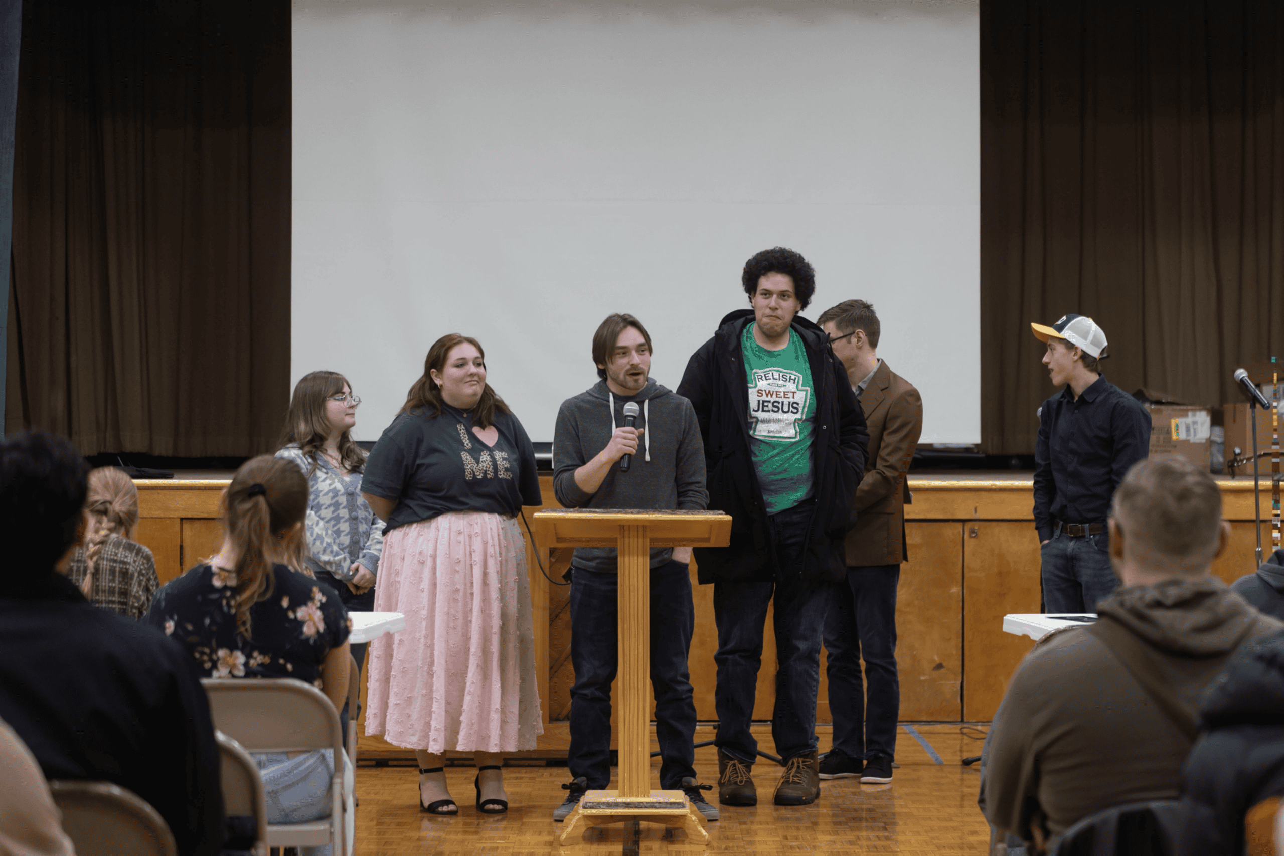 The goal of this event is to differentiate itself from a regular church service in that it is geared toward young people in various ways. The event doesn’t call for a strict dress code, it takes place in a gym, the music is energetic, and there are various special touches that we think make it a special experience for our youth and young adults. Aside from having a unique name (POP: Pieces of Purpose), logo, and theme song that serve to focus attendees on the idea of fitting into God’s plan, there are other special touches that make it a unique experience.