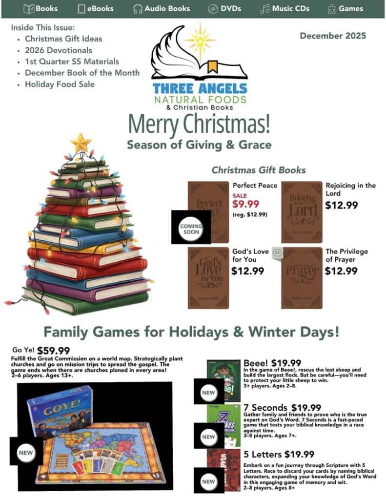 Enjoy seasonal savings on wholesome natural foods and a thoughtful selection of Christian books—perfect for nourishing both body and spirit this Christmas season. Be blessed with great deals all month long!
