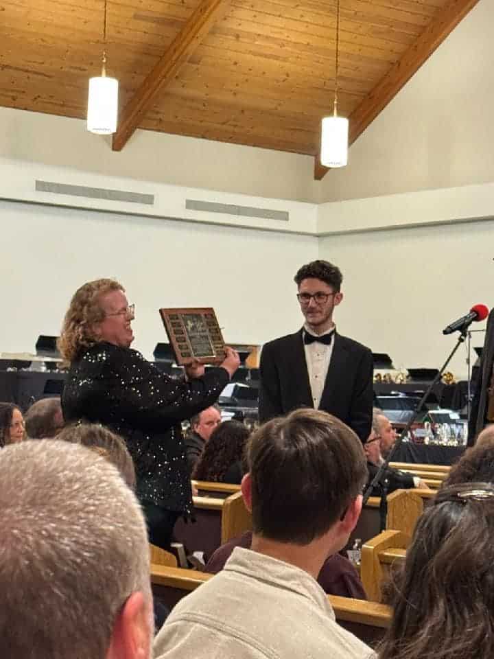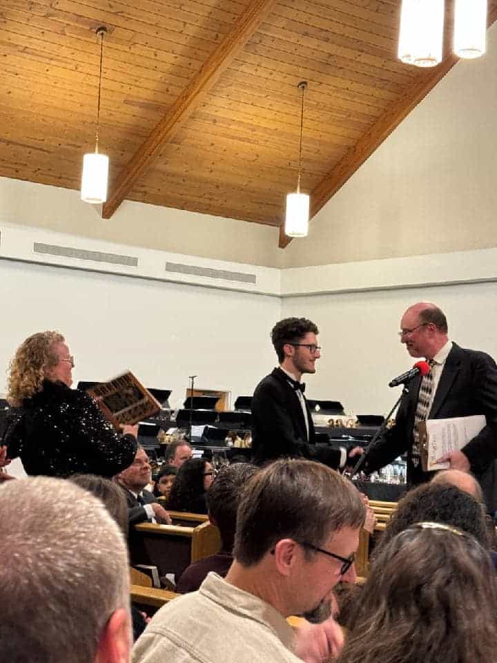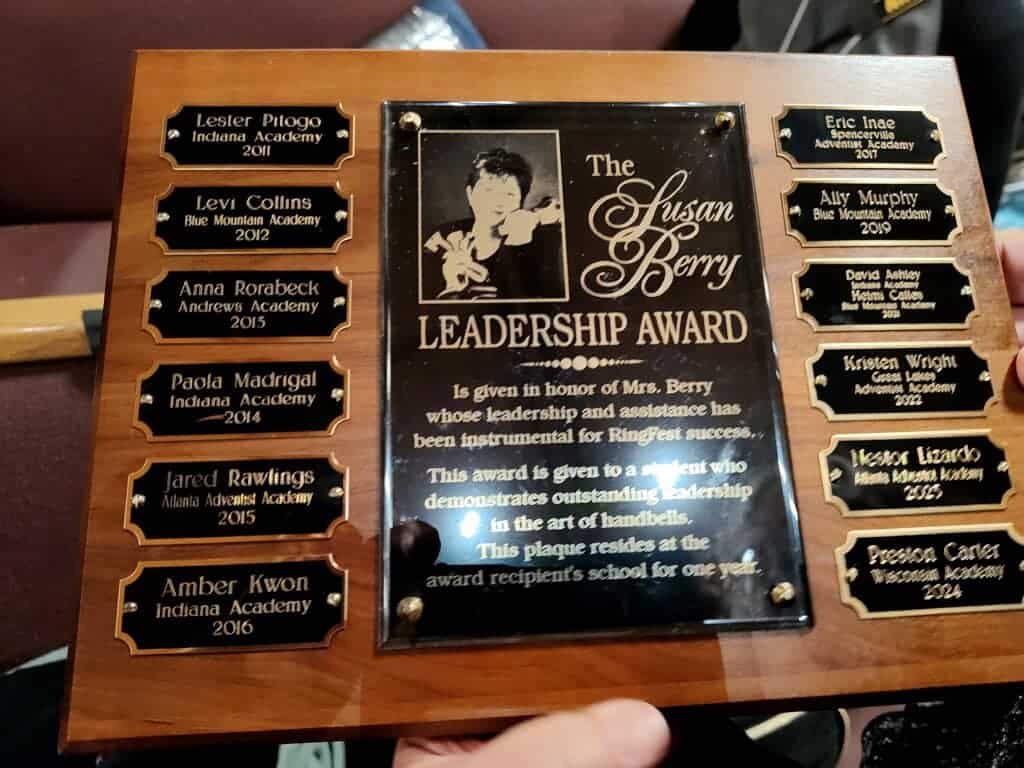 Wisconsin Academy (WA) Senior, Preston Carter, recently received the 2024 Susan Berry Leadership in Handbells Award during RingFest, held in Toledo, Ohio. One bell choir student in the North American Division who “demonstrates outstanding leadership in the art of handbells” is selected each year to receive the award. The award is based on musical ability, handbell technique, and the leadership character traits exhibited by the candidate. Eighteen schools from across the nation were represented at RingFest this year with over 300 participants glorifying God through music with handbells. This is the first time in the twenty-four year history of the festival that a Wisconsin Academy student has received the award!