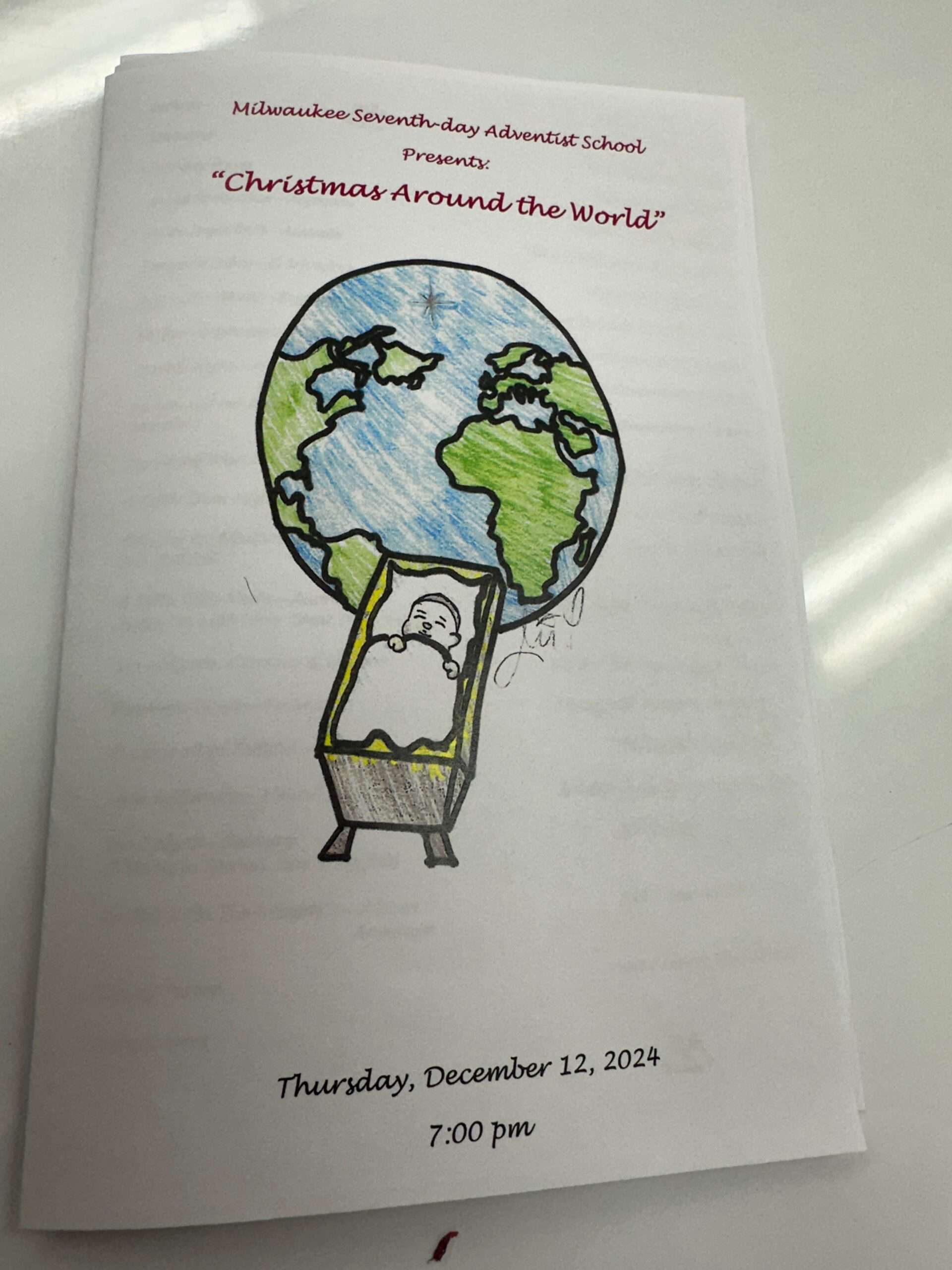 Students at the Milwaukee Seventh-day Adventist School (MSDAS) created the artwork below for their Christmas program flyer and K4-K5 bulletin board. Their Christmas was held on December 12th.