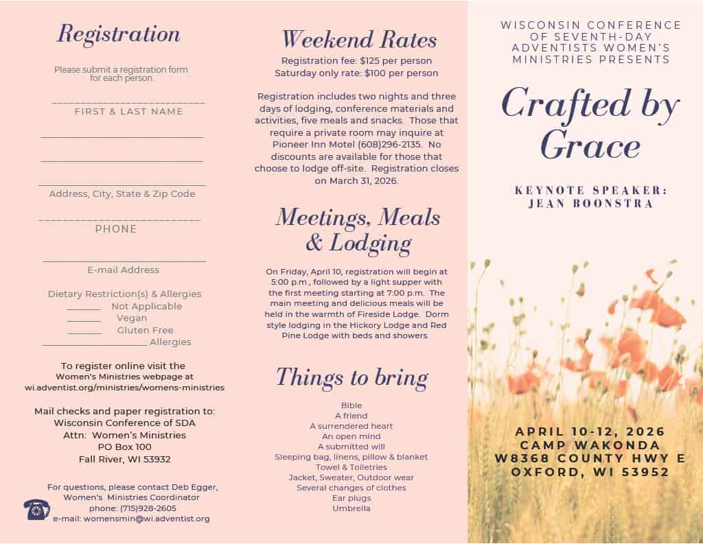 Join us for the Crafted by Grace Women’s Retreat, a meaningful weekend of worship, encouragement, and connection hosted by the Wisconsin Conference Women’s Ministries.